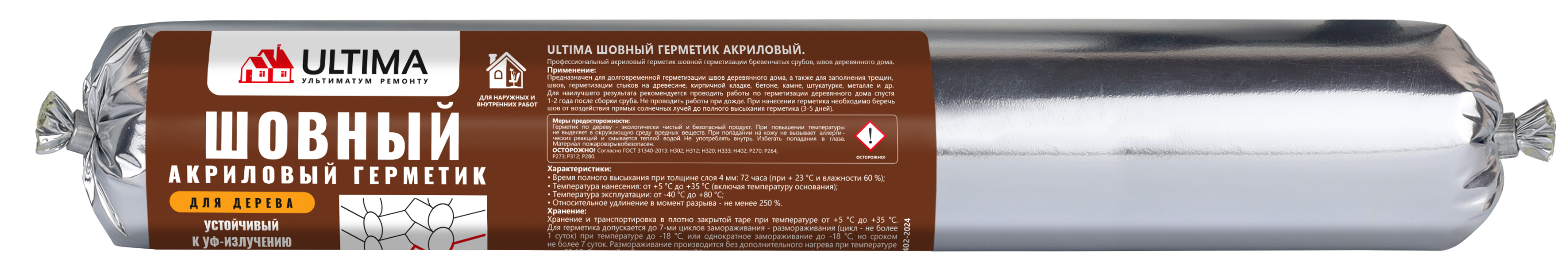 Герметик акриловый для дерева Теплый шов ОРЕГОН 600ml ULTIMA /