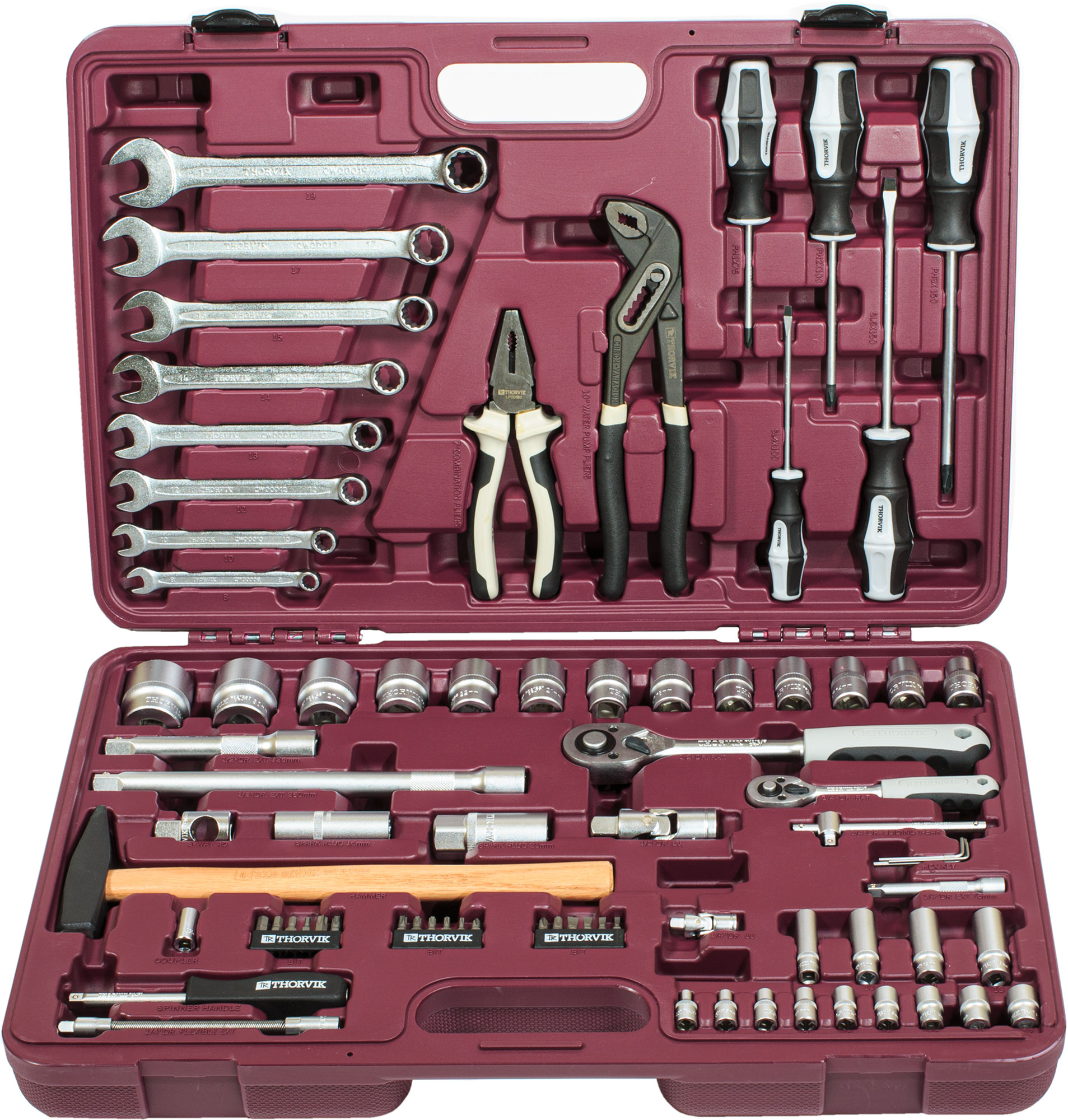 Набор инструмента универсальный 1/4", 1/2"DR с головками торцевыми 12-гранными, 77 предметов Thorvik /