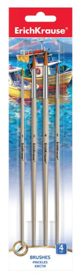 Кисти ErichKrause для акварели и гуаши, синтетика, 4 штуки (в блистере) /